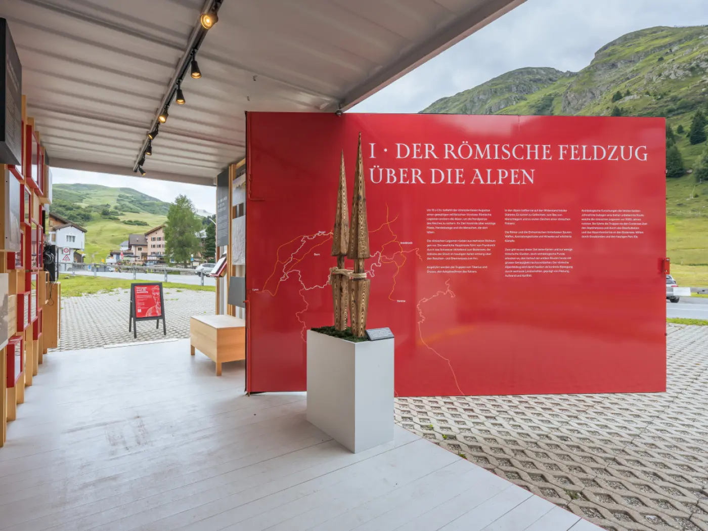 L'esposizione nel paese ai piedi del Passo del Giulia non passa inosservata: si trova all'interno di un container rosso fiammante, lo stesso usato durante i festeggiamenti dei 500 anni dello Stato delle Tre Leghe, l'anno scorso. Al suo interno si apre la storia dell'avanzata romana avvenuta proprio in queste zone 2000 anni fa. "I soldati hanno lasciato tracce del loro passaggio attraverso le Alpi lungo 60 chilometri", racconta l'archeologo cantonale, Thomas Reitmaier, a Keystone-ATS.